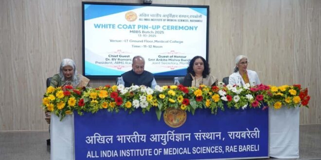 अखिल भारतीय आयुर्विज्ञान संस्थान (एम्स), रायबरेली ने दिनांक 13 अक्टूबर 2025 को संस्थान की नवनियुक्त कार्यकारी निदेशक डॉ अमिता जैन के मार्गदर्शन में अपना वार्षिक व्हाइट कोट पिन-अप समारोह आयोजित किया – जो एमबीबीएस के नए बैच में शामिल हुए छात्रों के लिए एक महत्वपूर्ण उपलब्धि है।
