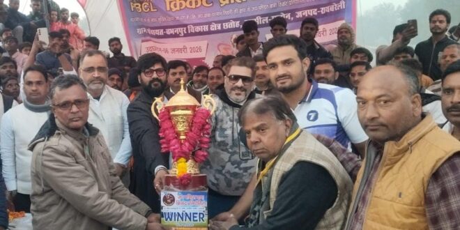 नसीराबाद रायबरेली:-बभनपुर में 6 जनवरी से जय पंडित बाबा क्रिकेट टूर्नामेंट प्रतियोगिता शुरू हुआ था जिसका 16जनवरी को फाइनल मुकाबला हुआ।बाबा परमान तिवारी धाम बभनपुर में शिवपती देवी शिवदर्शन पांडेय सेवा समिति के संस्थापक अखिलेश आर पांडेय एवं अध्यक्ष शिप्रा ए पांडेय एवं मुख्य अतिथि सलोन विधायक अशोक कोरी व छतोह ब्लॉक प्रमुख प्रतिनिधि विशाल सिंह रहे। राम बिलास पांडेय द्वारा आयोजित जय पंडित बाबा क्रिकेट प्रतियोगिता का शुभारंभ हुआ।पहला मैच जानकी देवी और फौजी एलेवन के बीच मे खेला गया जिसमें जानकी देवी ने टॉस जीत कर बैटिंग का फैसला लिया जिसमें जानकी देवी 150 का स्कोर बना सकी स्कोर का पीछा करने उतरी फौजी एलेवन ने 75 रन पर ही सिमट गई प्रतियोगिता के आयोजक प्रधान प्रतिनिधि भूपेंद्र सिंह और प्रधान पति राधेश्याम यादव ने फाइनल मैच में सभी अतिथियों का माल्यार्पण करके स्वागत किया फाइनल मैच शिव विद्या रमसापुर और जानकी देवी स्कूल के बीच में खेला गया टॉस जीतकर जानकी देवी ने फिल्डिंग का निर्णय लिया। कैप्टन शकील के नेतृत्व में बैटिंग करते हुए निर्धारित 12 ओवर में 118 रन बनाकर प्रतिपक्षी टीम के सामने जीत के लिए 119रन का लक्ष्य रखा जिसका पीछा करने उतरी जानकी देवी स्कूल की टीम 64 रन पर ही सिमट गई। इस तरह शिव विद्या स्कूल की टीम ने 54 रन से मैच को जीत हासिल की।